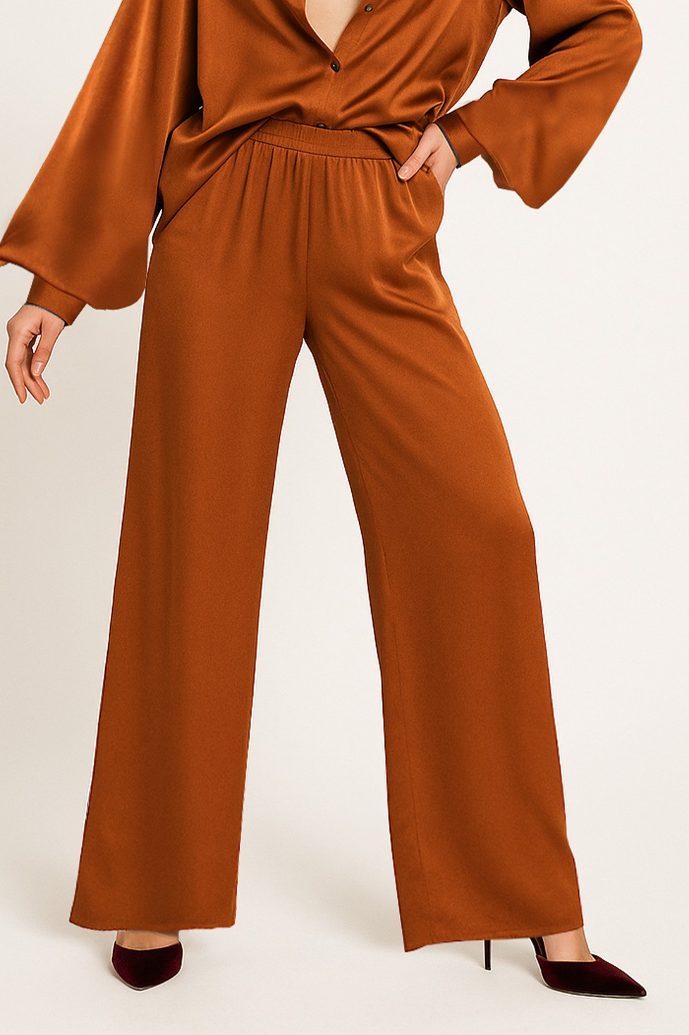 Blusa em tecido leve e fluido, com gola de lapela e mangas compridas.