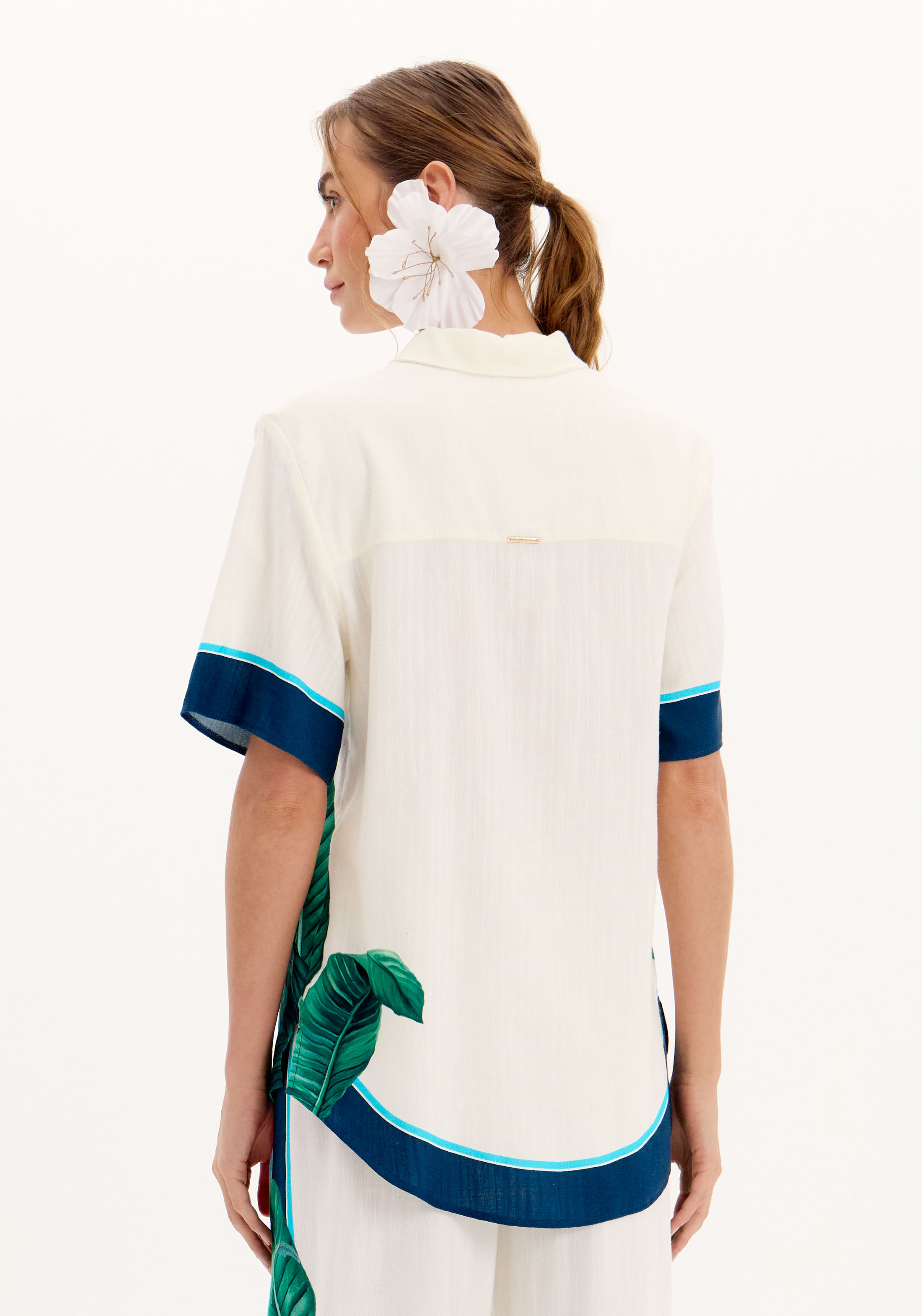 Camisa em Branco com Estampa Folhagem - Lança Perfume