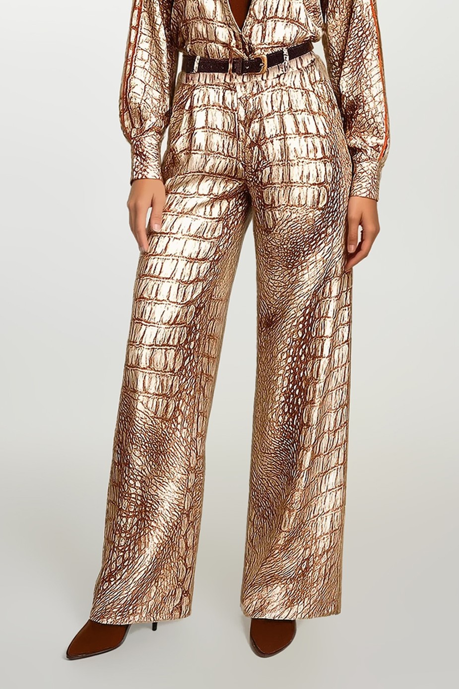 Camisa Sahoco em cetim com estampado animal inspirado em pele exótica.