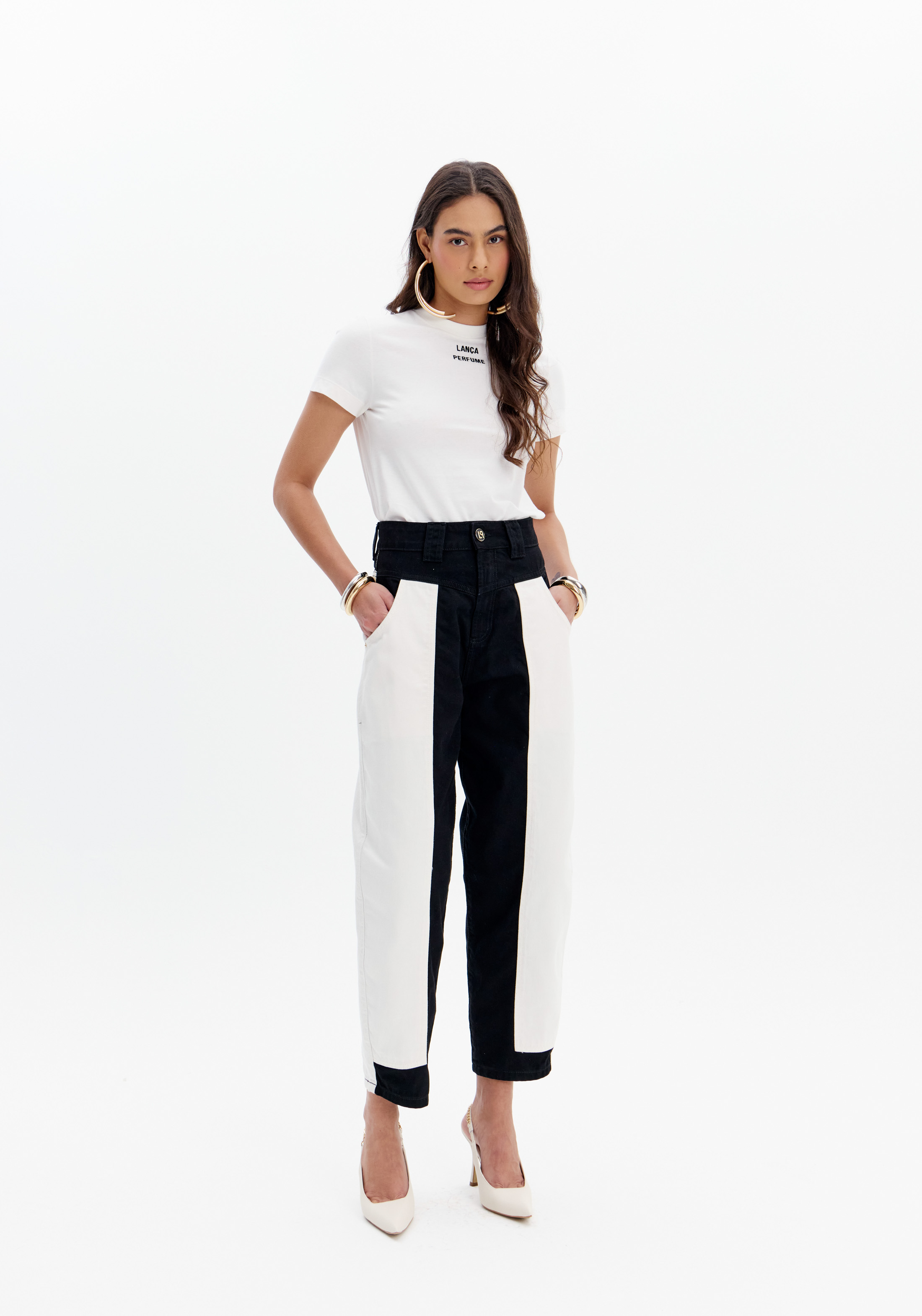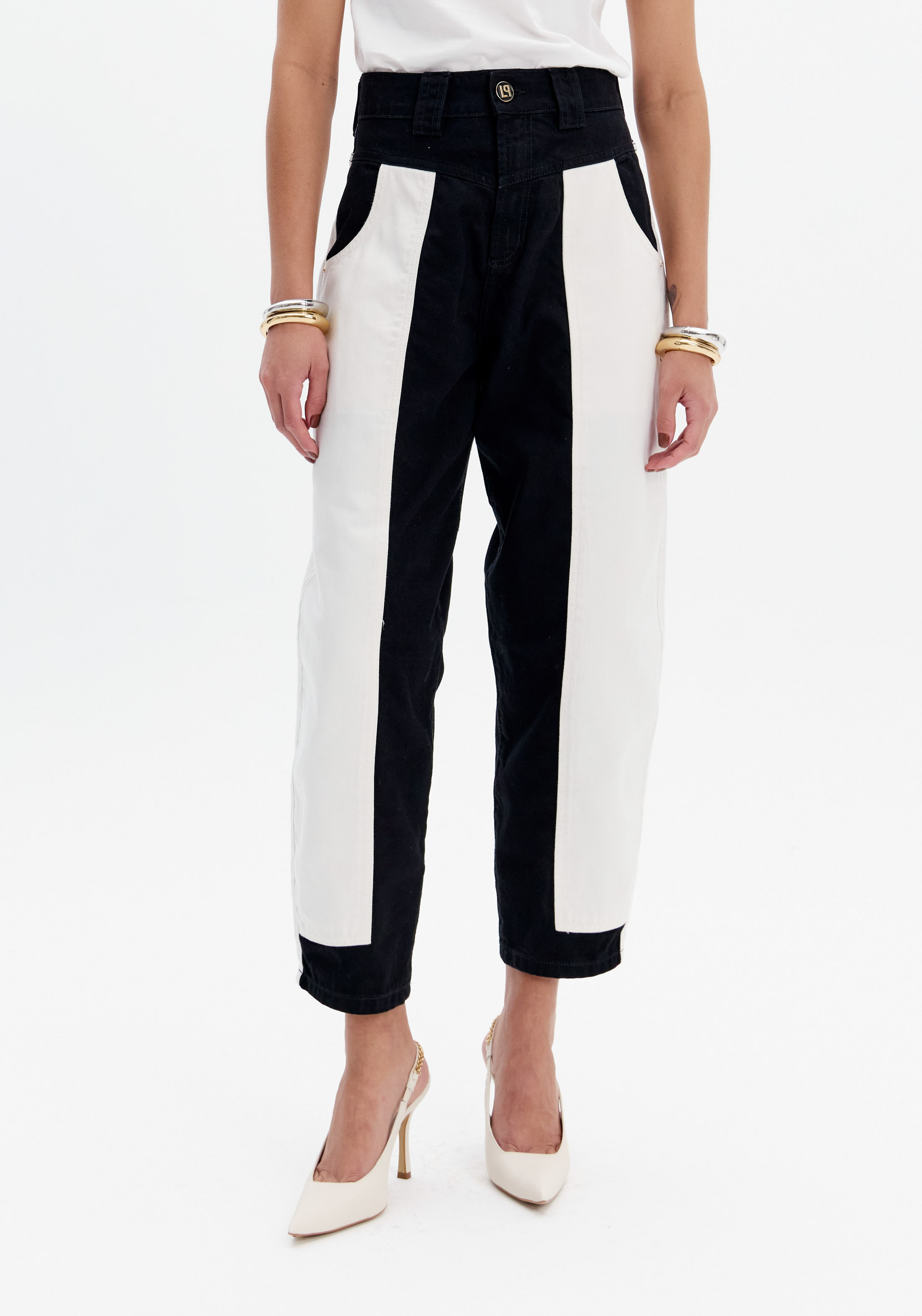 Calças Largas Bicolor Preto e Branco - Lança Perfume