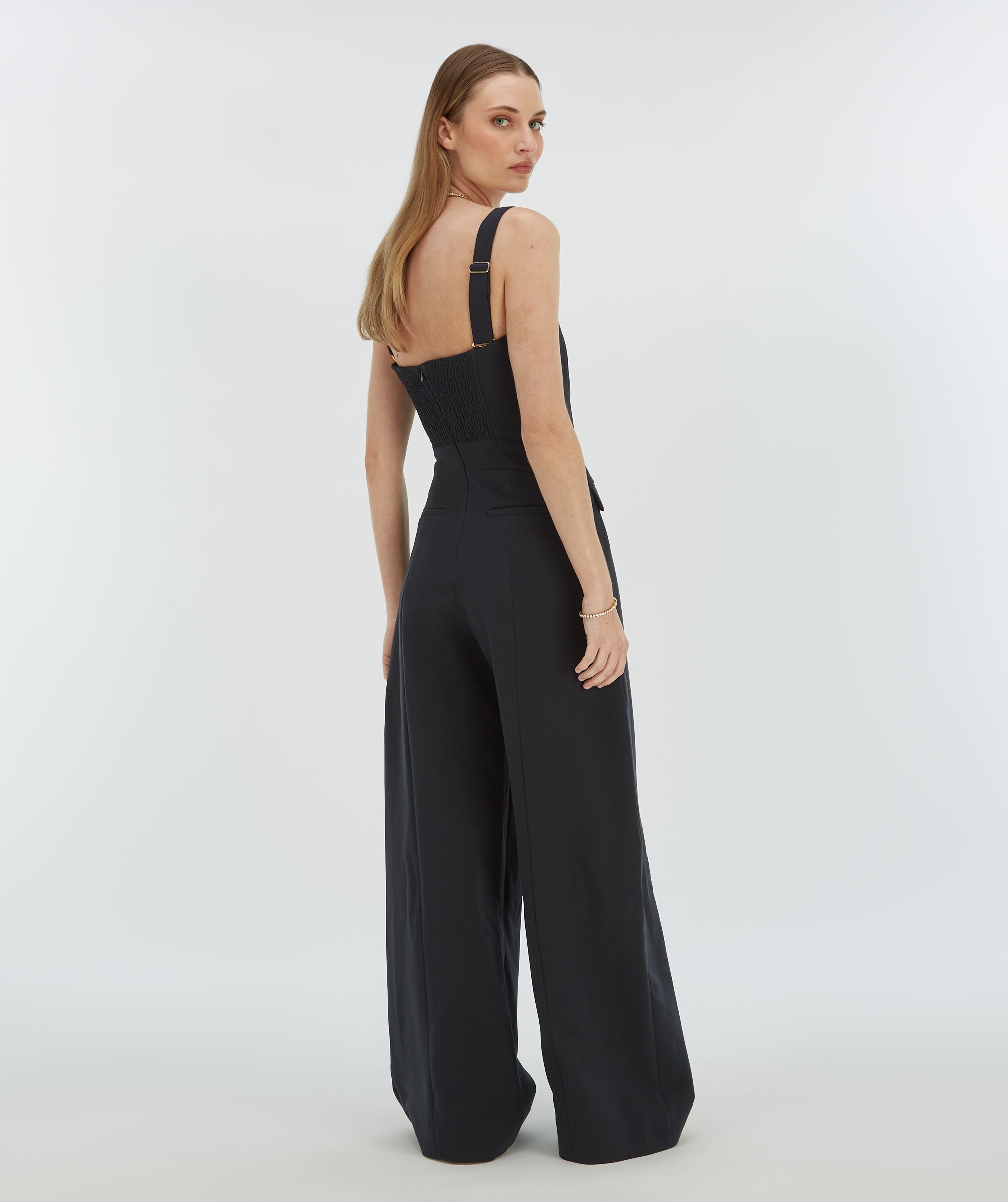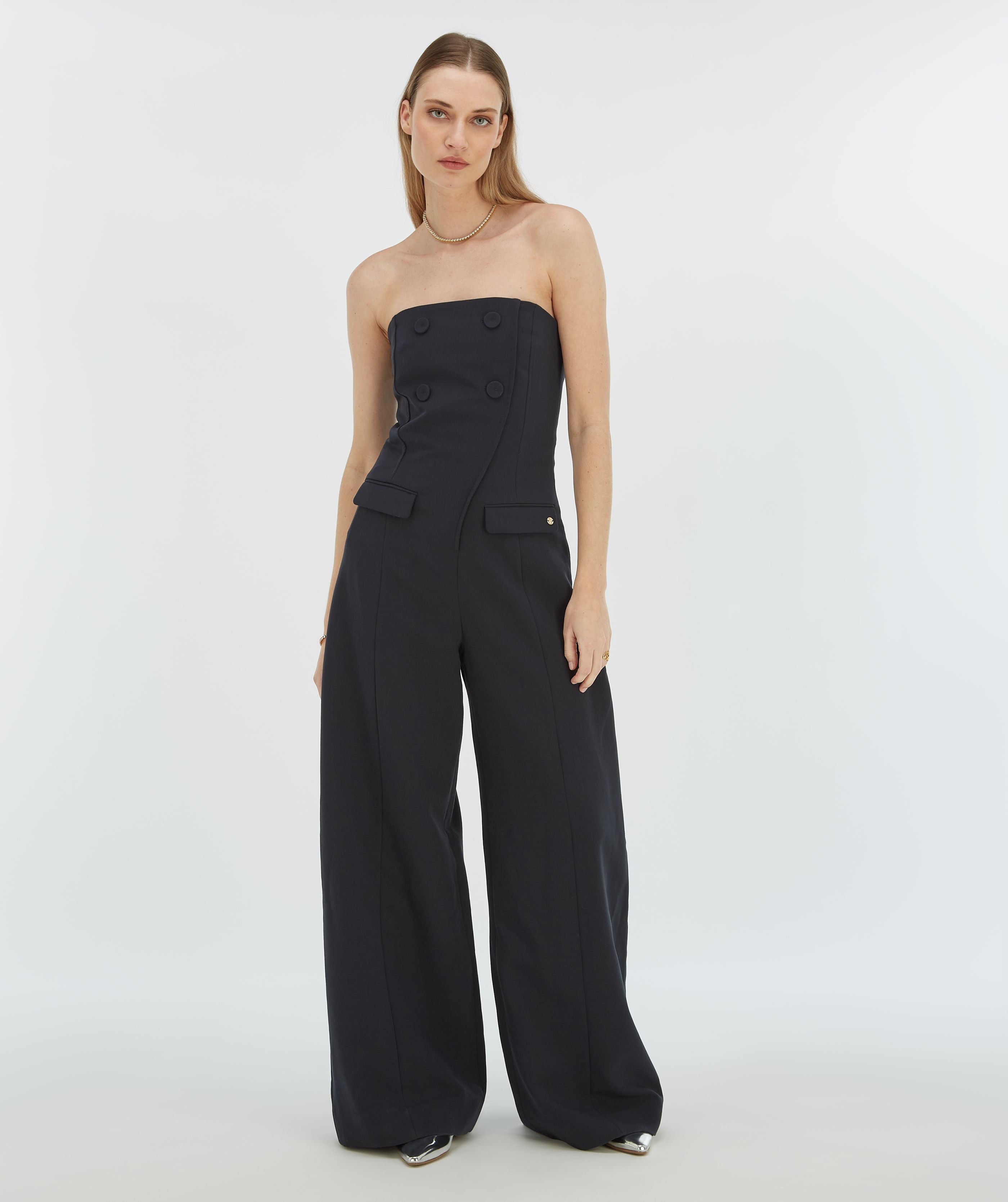 • Este macacão de pernas largas pode ser usado sem alças graças às alças removíveis. Além disso, as alças são ajustáveis.