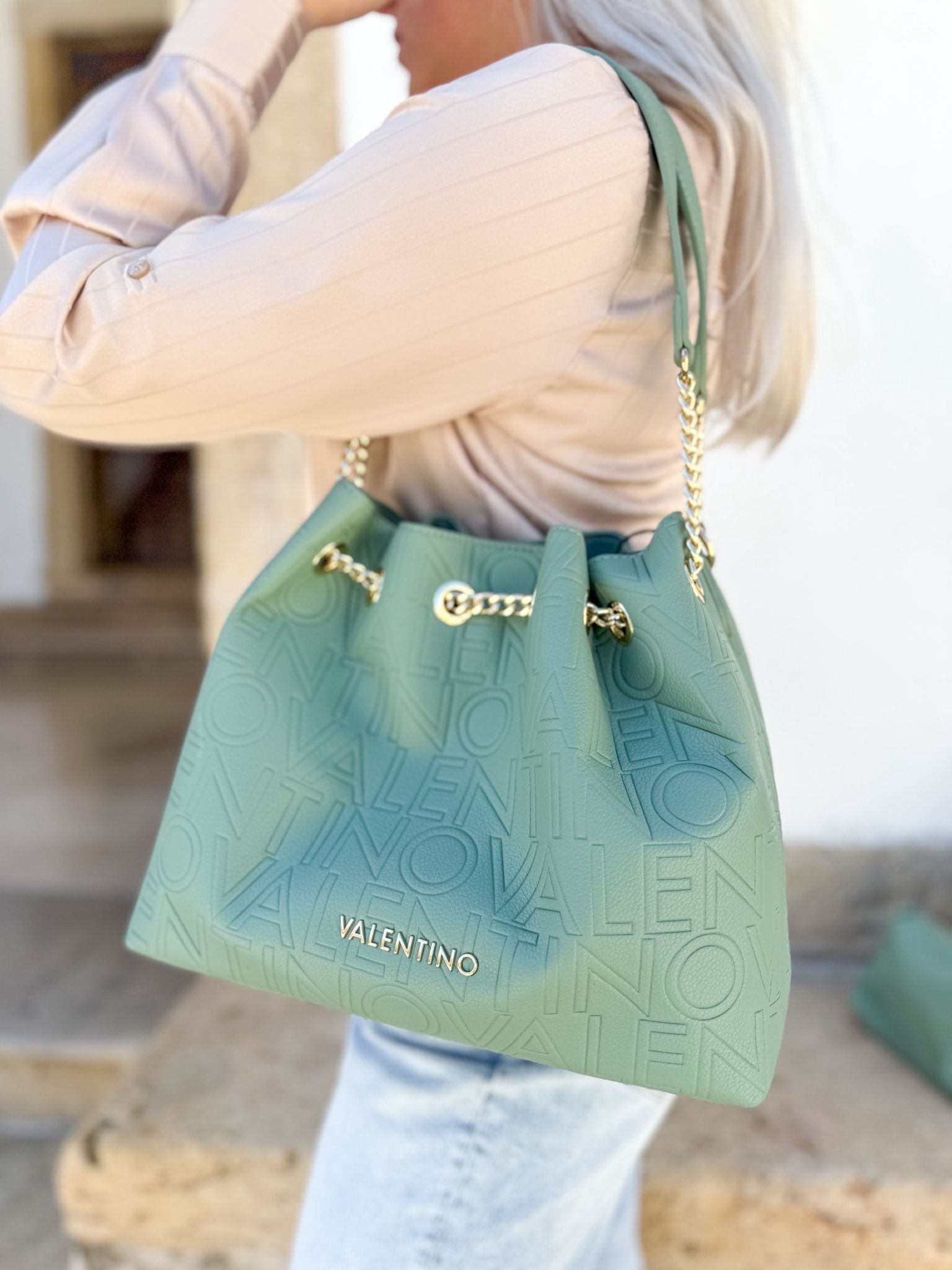 Mala de Ombro Pansy Verde Logo Gravado - Valentino