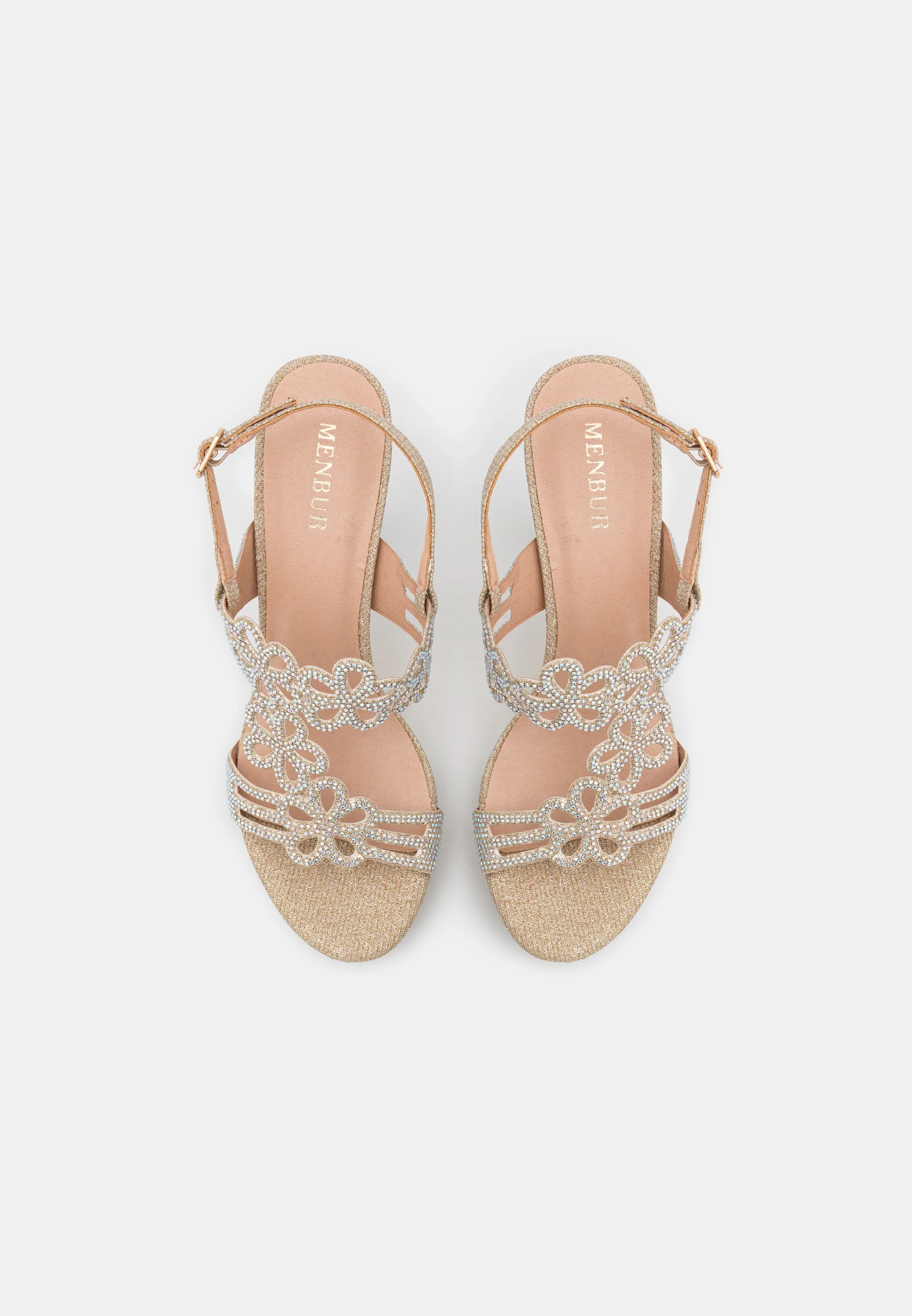 Sandália de Salto Compensada Nete Dourada - Menbur