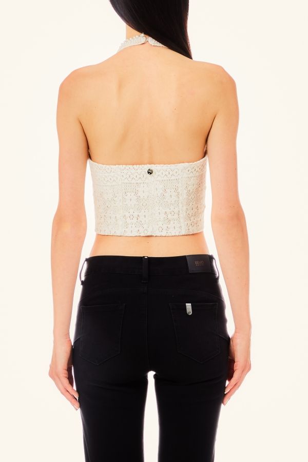 Top com Decote em V e Pérolas Creme - Liu Jo