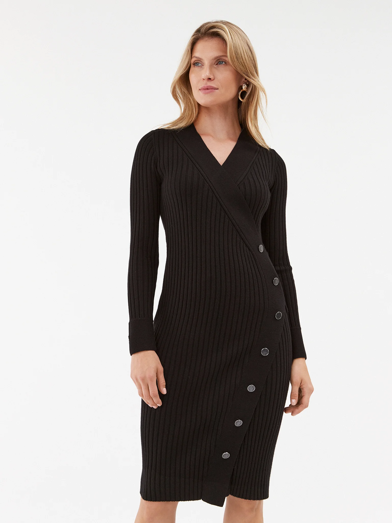 Vestido em Malha com Botões Cecile Preto - Guess