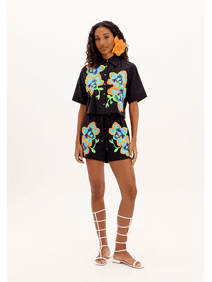 Top Preto com Aplicação Floral Neon - Lança Perfume