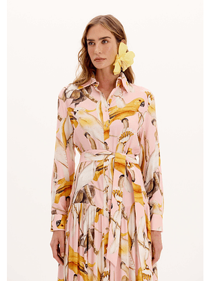 Vestido Comprido Rosa Estampa Catatuas - Lança Perfume