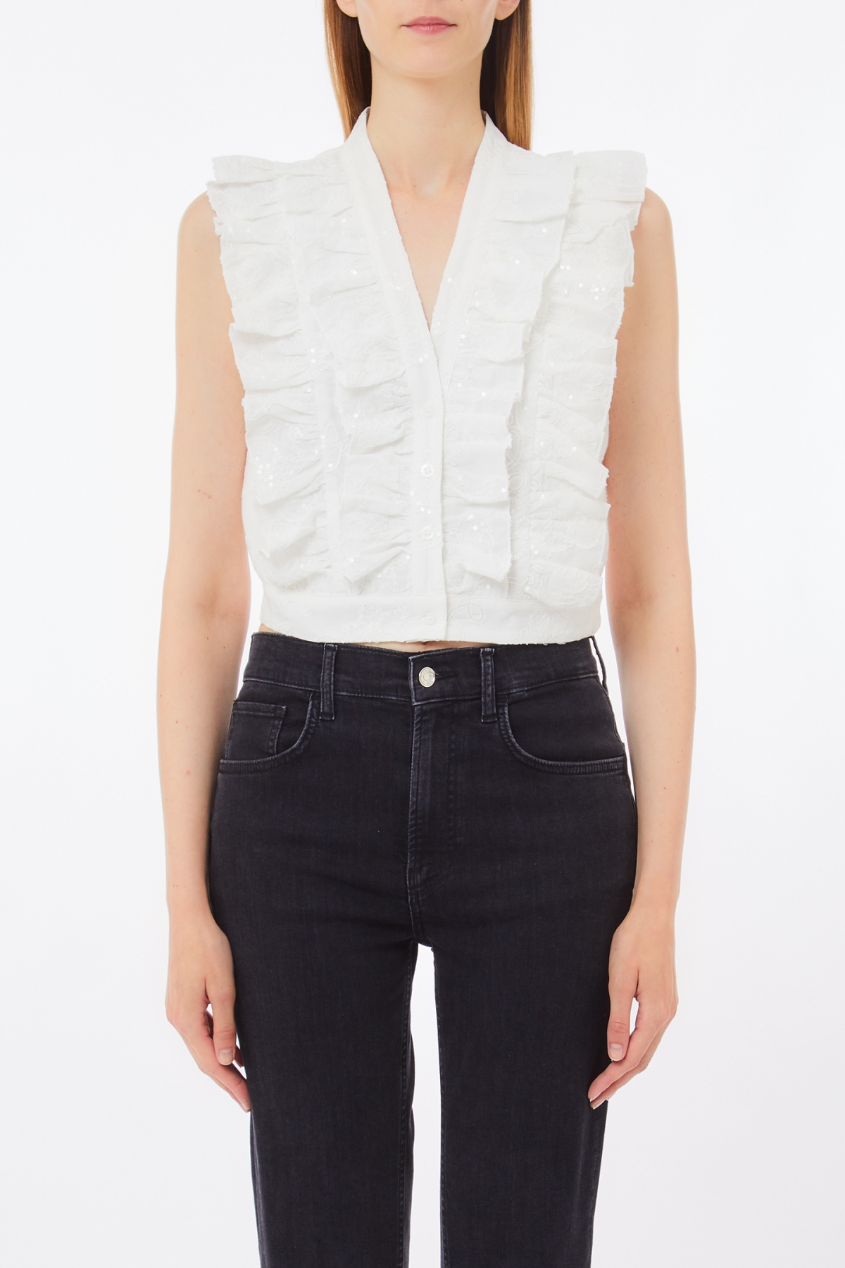 Blusa Branca com Folhos e Lantejoulas - LIU JO